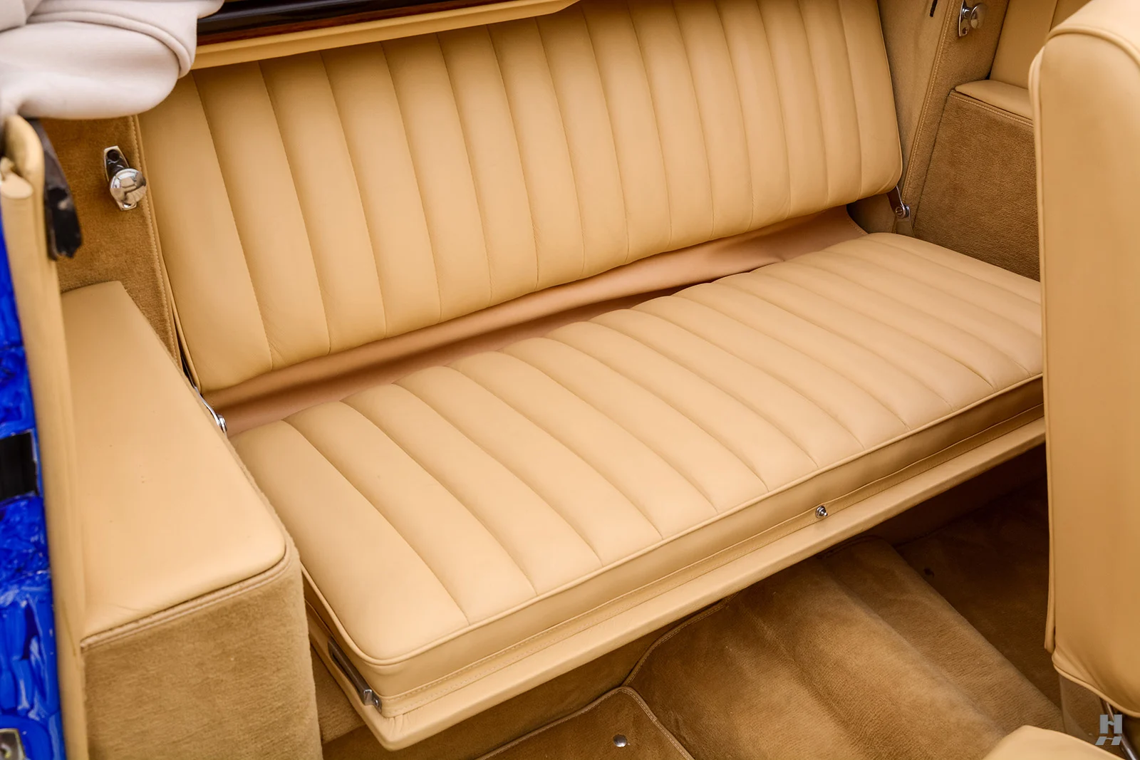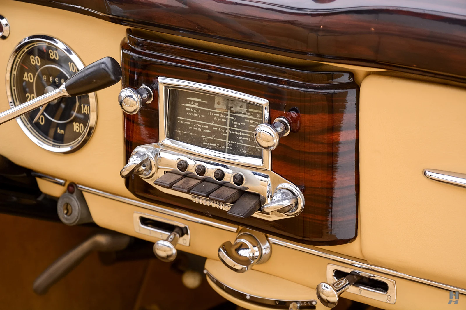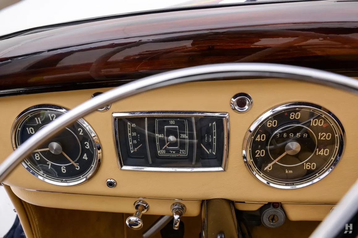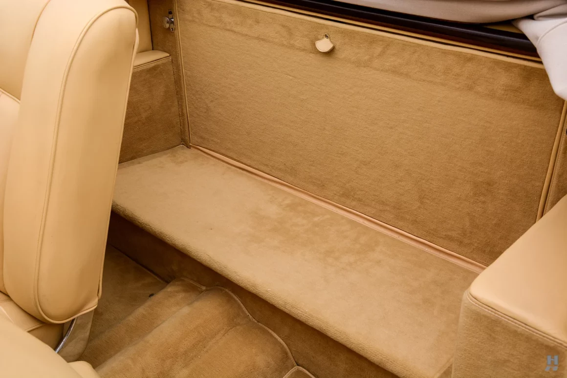 Il eut fallu un cuir bleu en rappel avec le bleu de bas de décor… C’est donc une œuvre d’art roulable vraiment étonnante, à l’habitacle sans aucun rapport de décor, mais basée sur l’un des plus beaux modèles Mercedes-Benz d’après-guerre. Cette Mercedes-Benz 220A Cabriolet A de 1952 n’est qu’une trouvaille pour un riche collectionneur, ex-hippie mais toujours déjanté, faut-il qu’il se fasse convaincre et puisse payer les 260.000 $ demandés…