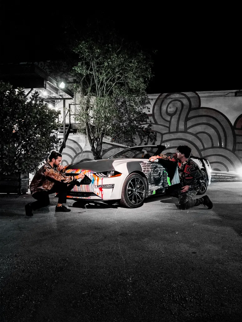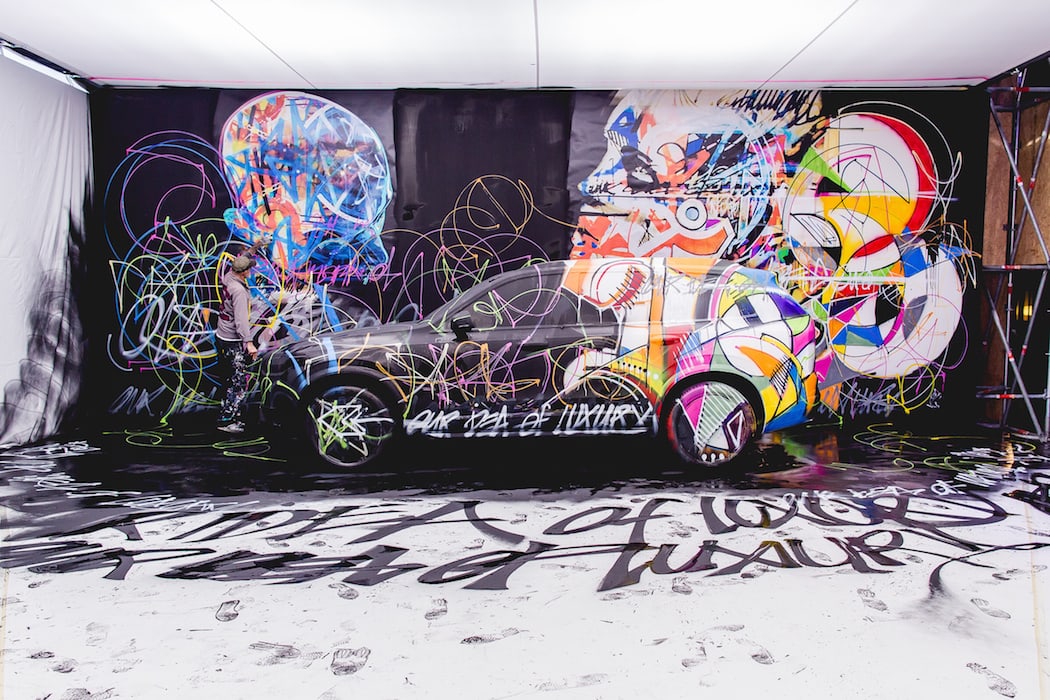 Bien que restaurées pour être dignes de la pelouse du concours, les voitures de Yamagata ont “merveilleusement” servi de toiles vierges pour sa vision d’une sorte de viol artistique pour ce projet qualifié de monumental, avec des carrosseries finies en peinture acrylique blanche mate et des surfaces rugueuses, fournissant une couche d’apprêt pour les œuvres peintes à la main de Yamagata, chaque voiture de la série présentant un motif unique.