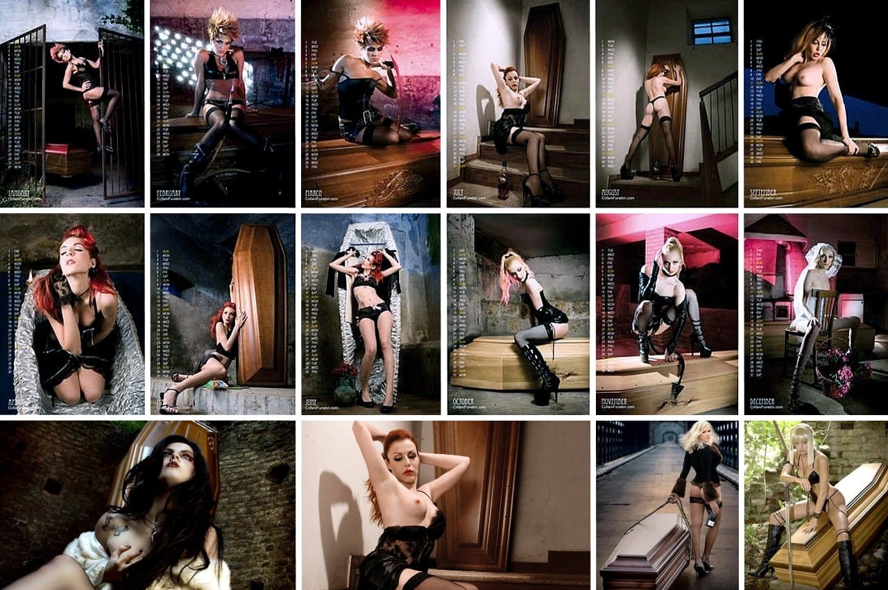 Un fabricant de cercueils italien n’hésite pas à associer funérarium et femmes sexy dans un calendrier improbable…, des femmes dénudées qui posent sur des cercueils dans une ambiance hot & glauque, voilà ce que propose chaque année le calendrier de la société italienne Cofani Funebri qui se revendique “artiste funèbre”…