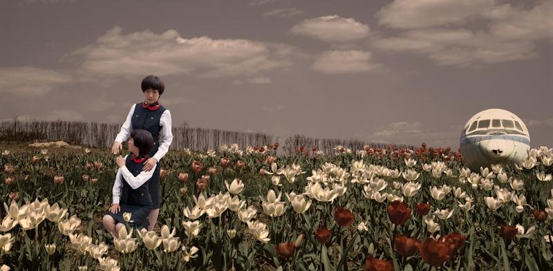 Pour accompagner les photos de sa dernière série publiées ici, elle a écrit un long texte qui commence ainsi : “Hier soir, j’ai fait un rêve étrange : quand je suis arrivée à l’aéroport vêtue de mon uniforme, le bureau avait changé d’apparence, il était haut et étroit, tout d’un coup, il avait deux oreilles ! Les tulipes, qui se trouvent devant l’immeuble, sont rouges, comme baignées par le sang, elles apportent aussi une douleur flétrie !”…